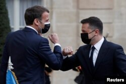 Президент України Володимир Зеленський у п’ятницю провів зустріч із президентом Франції Емманюелем Макроном віч-на-віч в Єлисейському палаці в Парижі. Приводом для переговорів стало загострення ситуації на Донбасі та стягування російських військ до кордонів України та в окупований Крим.