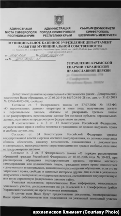 «2012-2013 рік: рішенням сімферопольської міської ради нам було виділено земельну ділянку біля української гімназії по вулиці Київська в 0,5 гектари. Потім почався рух, щоб нам цю землю не давати, тому що фірма «Моноліт» зацікавилася цією ділянкою. На другому етапі вирішили, що ми відсунемося вглиб поля. Є державний акт про те, що ця земля перебуває в користуванні, в управлінні кримської єпархії», – розповів Климент.