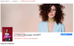 Запланований раніше концерт російської співачки Юлії Зиверт, відомої як Zivert, в Одесі 24 липня не відбудеться. Про це свідчать зокрема сайти для продажу квитків.