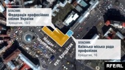 Нелегально збудовані поверхи на згорілому Будинку профспілок на майдані Незалежності у Києві можуть розібрати в обмін на дозвіл забудовнику отримати землі поряд. Про це йдеться у розслідуванні програми «Схеми», спільному проекті Радіо Свобода і Першого Суспільного каналу.