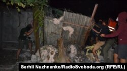 Як повідомляє кореспондент Радіо Свобода, наразі активісти руйнують металевий паркан, обтягнутий колючим дротом, яким було оточене місце майбутньої забудови.