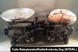 За словами директора музею «Пам’ять єврейського народу та Голокост в Україні» Ігоря Щупака, одним із найсимволічніших експонатів виставки стали металеві ваги 30-х років минулого століття, на шальках яких із одного боку – родинні цінності, коштовні речі, які сім’я вимінювала на хліб, з іншого – погано пропечена житня хлібина, що могла врятувати життя.