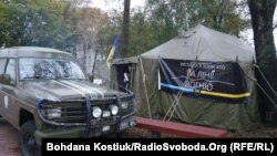 Організатори виставки розташували її у військовому наметі на Михайлівській площі, де під час Революції гідності були намети Самооборони Майдану. Вперше виставку «На лінії вогню» кияни побачили влітку минулого року, вона включала артефакти, привезені з Донеччини, каже Афанасьєва.