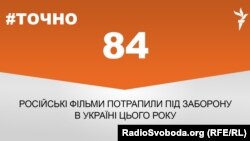 Протягом цього року під заборону для розповсюдження на території України потрапили 84 кінофільми виробництва Росії. За висновками експертної комісії при Держкіно, ці фільми заборонено демонструвати і розповсюджувати для телепоказу, публічного комерційного відео чи домашнього відео на території України. Таку інформацію на запит про публічну інформацію надало Міністерство культури, передає #Точно, проект Радіо Свобода.