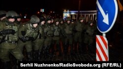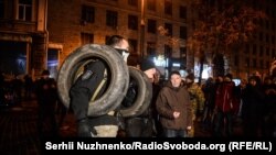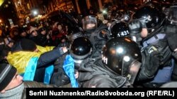 Між активістами «Організації українських націоналістів», «Правого сектор» і «Білого молота», які у центрі Києва проводили марш у пам’ять про події Революції гідності, та правоохоронцями відбулася штовханина. Причиною стала спроба активістів підпалити автомобільні шини.