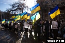 Поки в Нацраді тривало засідання, біля відомства зібрався мітинг. Громадські активісти та ветерани АТО вимагали припинити дію ліцензії радіостанції «Вести».