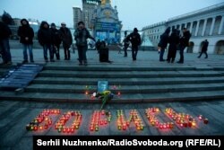 У неділю на майдані Незалежності в Києві близько 20 людей провели акцію пам’яті російського опозиційного політика Бориса Нємцова. Як передає кореспондент Радіо Свобода, активісти виклали з лампадок слово «Борись».