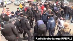 У Києві під час феміністичного маршу 8 березня поліція затримала кількох осіб. Як видно з трансляції Радіо Свобода, наразі йдеться про затримання щонайменше двох осіб.