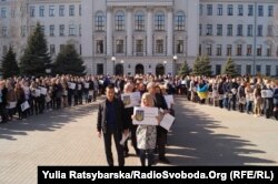 На площі між облдержадміністрацією та обласною радою Дніпра триста активістів сформували державний символ України – малий герб, тризуб. Серед учасників були люди різного віку, як члени громадських організацій, громадські активісти, депутати, так і студенти. У руках вони тримали плакати з написами українською та англійською: «Тризуб – це Україна» та «Trident is Ukraine».