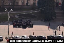 «Ця акція відбувається в різних країнах світу. Наша акція – це демонстрація того, що ми нація, яка поважає свої державі символи, нація, яка має державні символи, і вони не мають ніякого стосунку до фашизму чи нацизму. Це наші українські національні символи!» – сказав Віктор Романенко, даючи старт флешмобу.