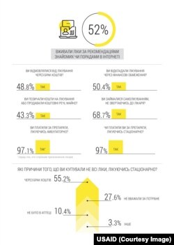 34% опитаних, згідно з дослідженням, звертаються до лікарів, а 6,4% українців користуються порадами фармацевтів у випадку захворювання.