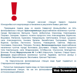 Подача води на Красноармійську й Великоанадольську фільтрувальні станції припинена повністю, бо вони не мають резервного джерела водопостачання.