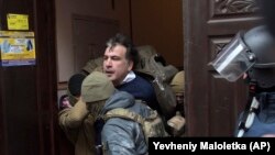 5 грудня правоохоронці прийшли з обшуком до квартири Саакашвілі у центрі Києва. Лідера «Руху нових сил» підозрюють у сприянні учасникам злочинної організації й укритті їх злочинної діяльності, йому оголосили підозру. СБУ спільно з Генпрокуратурою затримали екс-президента Грузії. Проте автомобіль правоохоронців із Саакашвілі всередині заблокували прихильники політика, вони почали споруджувати поруч барикади. Поліція застосовувала сльозогінний газ, повідомляє з місця подій кореспондент Радіо Свобода. Рух вулицею Грушевського, Європейською площею й Хрещатиком частково перекритий поліцією.
