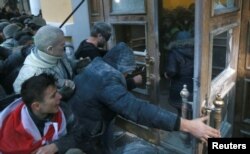 «Ми відвели наших людей на Майдан, я сказав, що наш шлях – це мирний шлях, вони хочуть насильства, ми засуджуємо будь-яке захоплення адміністративних будівель. Ви бачите, що ми два місяці не відходимо від наметів. Коли нас будуть мільйони, ці двері самі відкриються, не треба їх розбивати. Люди, це гра Порошенка, щоб усе це зобразити, як протест двох-трьох тисяч маргіналів, які лише те й роблять, що ламають двері й вікна», – вказав Саакашвілі.