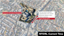 Мер Вашингтона Мюріел Баузер підписала ухвалене місцевою радою рішення про присвоєння площі перед посольством Росії імені російського опозиційного політика Бориса Нємцова, якого вбили в лютому 2015 року.