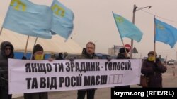 Біля контрольного пункту в'їзду та виїзду «Чонгар» на адміністративному кордоні з Кримом 18 березня відбулася акція проти проведення російських виборів на півострові, повідомляє сайт Крим.Реалії.