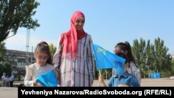 Учасники акції підняли кримськотатарський прапор на флагшток, встановлений на центральній площі міста. Як повідомляє кореспондент Радіо Свобода, тут він висітиме поряд із національним прапором упродовж всього дня.