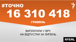 16,3 мільйона гривень відпускних виплатило управління справами Верховної Ради України народним депутатам і працівникам апарату в першій половині липня 2018 року. Така інформація міститься на порталі використання публічних коштів, повідомляє #Точно, проект Радіо Свобода.