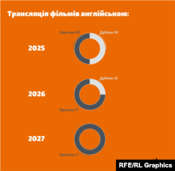 Окремо в законі прописаний графік переходу на трансляцію фільмів англійською мовою в оригіналі з українськими субтитрами: