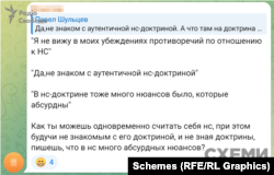 У цьому телеграм-каналі хлопець засуджував іншого користувача за те, що той декларує свою приналежність до NS/WP (National-Socialism/White Power – ред.), не знаючи «доктрини» організації.