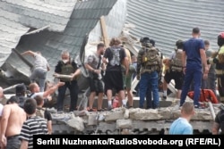 Рятувальники і добровольці намагаються швидко розібрати завали над укриттям одного із відділень дитячої лікарні «Охматдит», де перебувають діти і медперсонал.