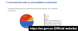 Опитування серед більш ніж 8 тисяч батьків про навчання їхніх дітей під час карантину, яке провела у квітні цього року служба освітнього омбудсмена, показало, що основними проблемами виявилися організаційні (відсутність єдиного ресурсу для проведення онлайн-уроків, неузгодженість розкладу занять), психологічні (відсутність мотивації до навчання, невміння працювати самостійно), а також технічні проблеми (погана якість інтернету або ж його відсутність, застарілість комп’ютерного обладнання і програмного забезпечення). 5,6% респондентів відповіли, що їхні діти взагалі не навчалися в період карантину.