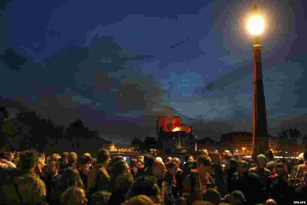Велика пожежа в соборі Паризької Богоматері ліквідована. Пожежники стежать за залишковими вогнищами загоряння і охолоджують несучі конструкції будівлі, щоб полум'я знову не спалахнуло