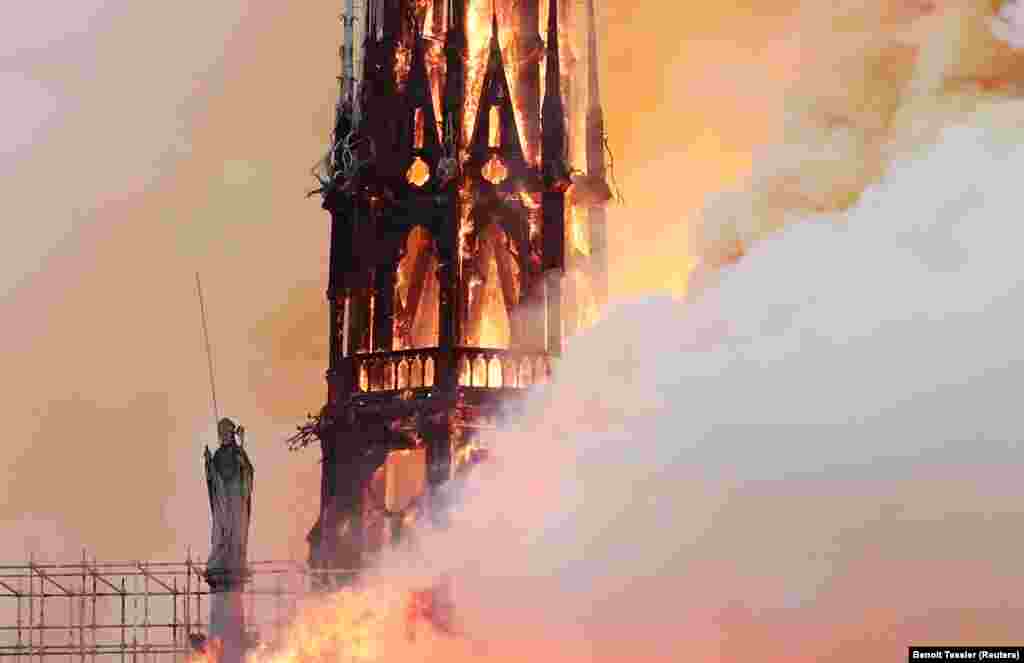 Через пожежу звалився шпиль собору. За словами представника собору, полум'я знищило всі дерев'яні конструкції, які підтримували дах