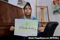 Сергій Голубенко – також переселенець з Волновахи – обрав для свого малюнка один з краєвидів сусіднього міста Вугледара.
