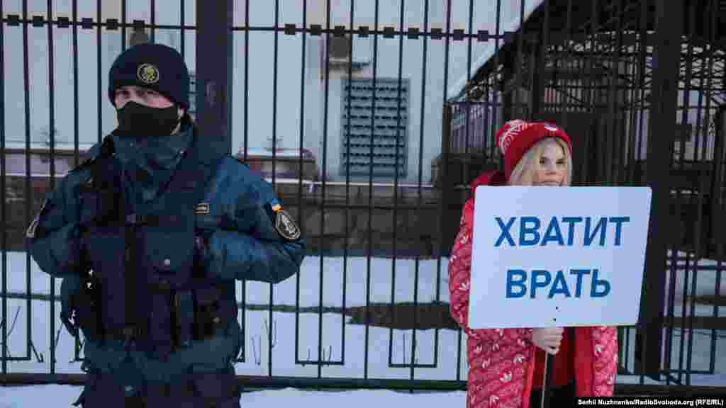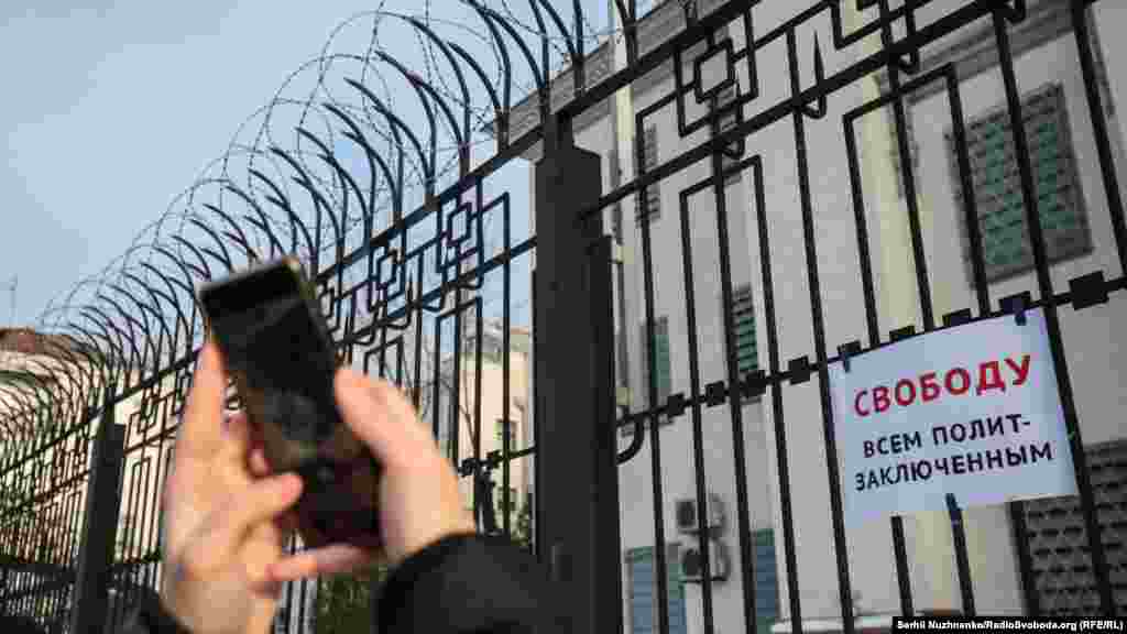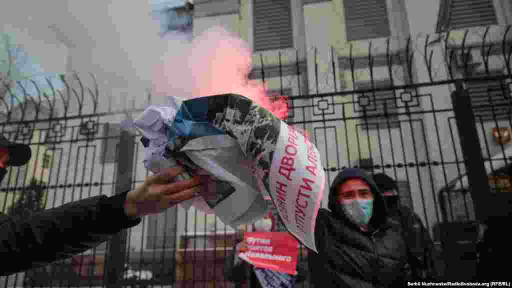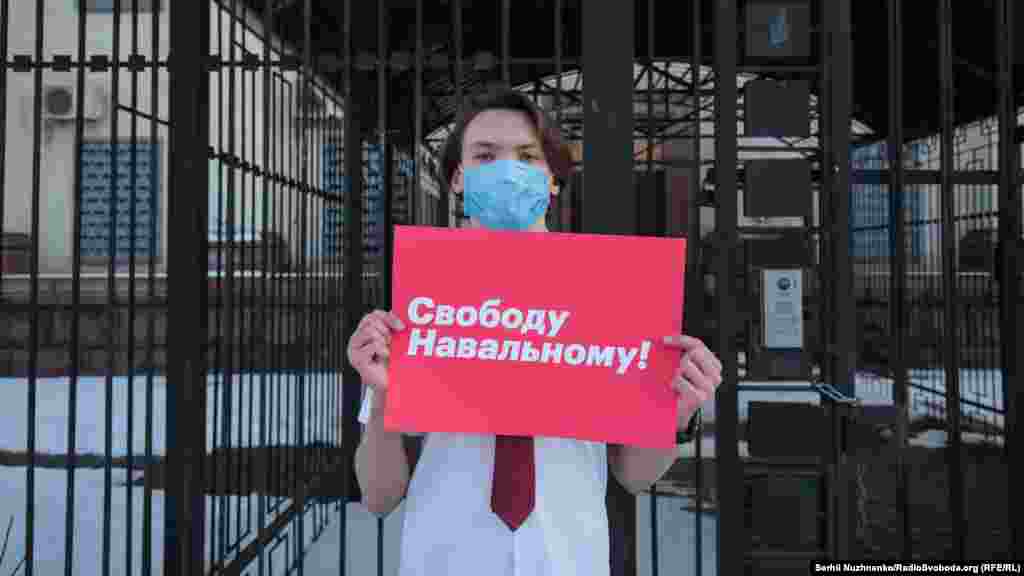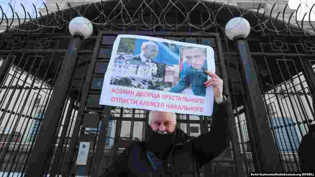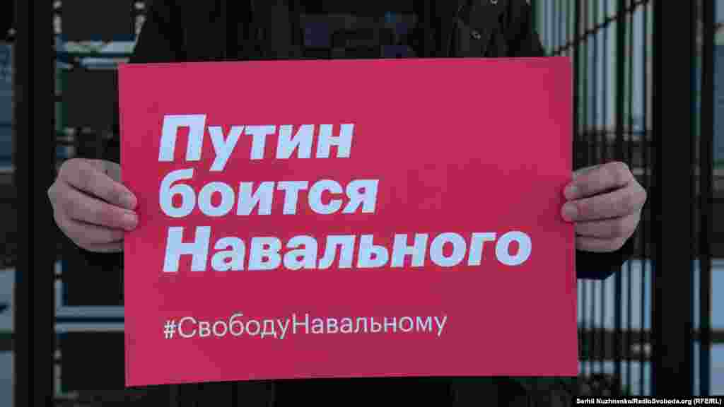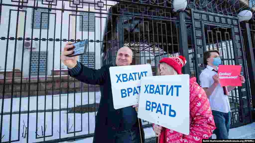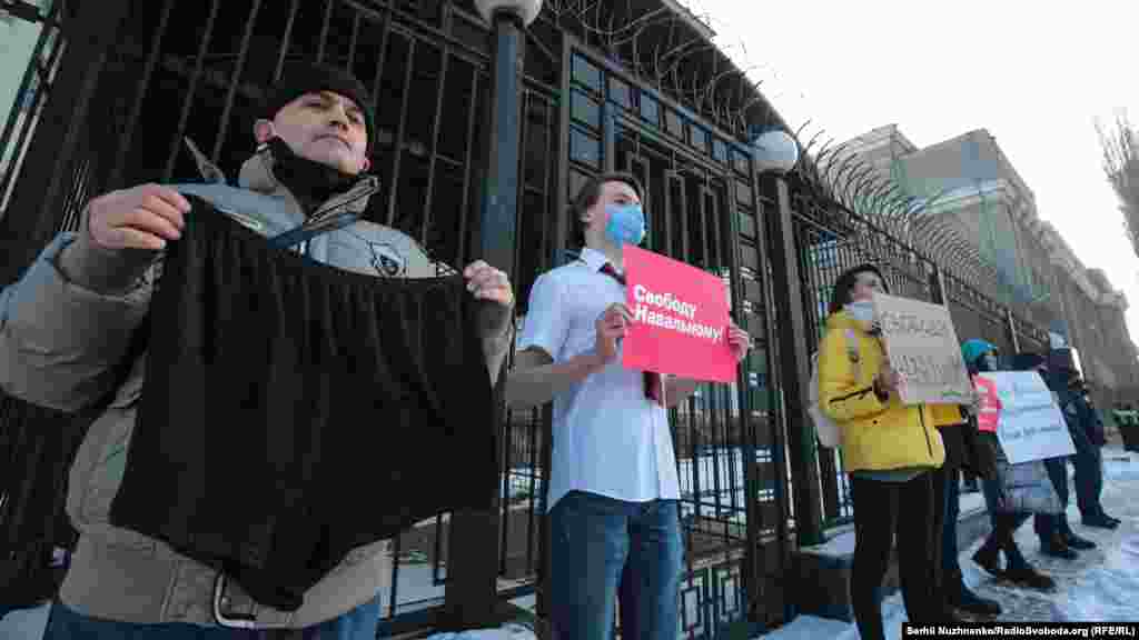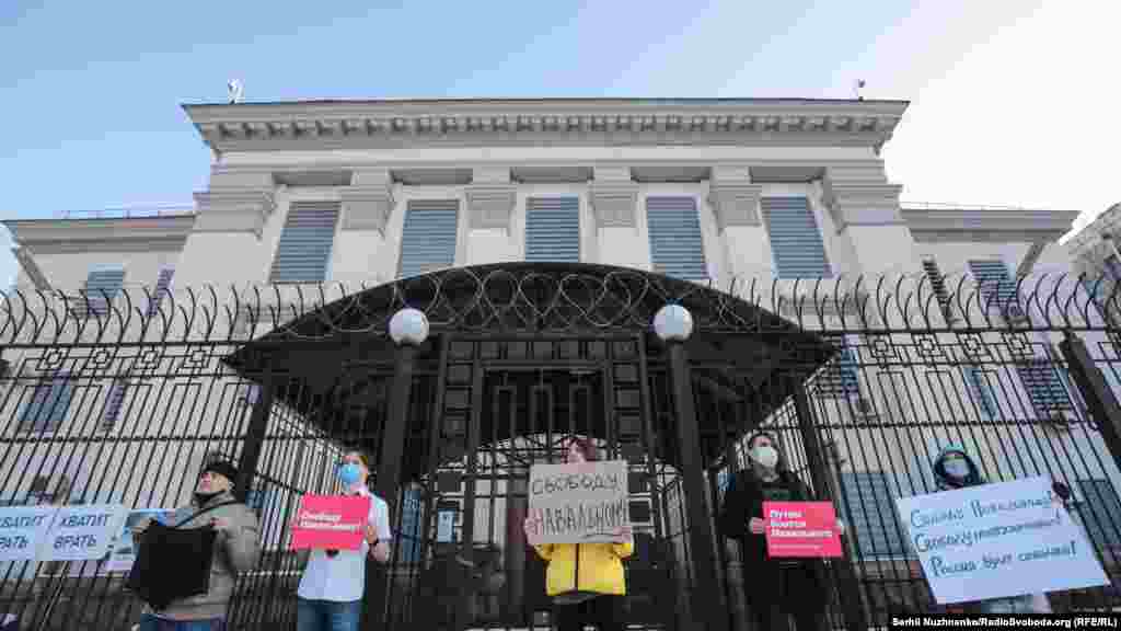За словами кореспондента Радіо Свобода, близько 10-15 людей тримали в руках плакати, ще близько 30-ти були присутні у якості учасників акції та глядачів. Майже по закінченню акції до посольства прийшли близько двох десятків чоловіків. Вони зривали плакати на підтримку Навального з паркану посольства, а також виривали їх із рук учасників акції.