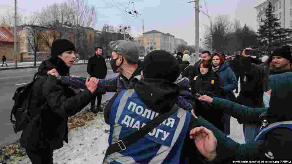 Суперечка переросла в штовханину, прибулі чоловіки вдарили кількох учасників акції, згодом противників мітингу відтіснила поліція, яка перебувала на місці. Двох із них затримали, але невдовзі відпустили.