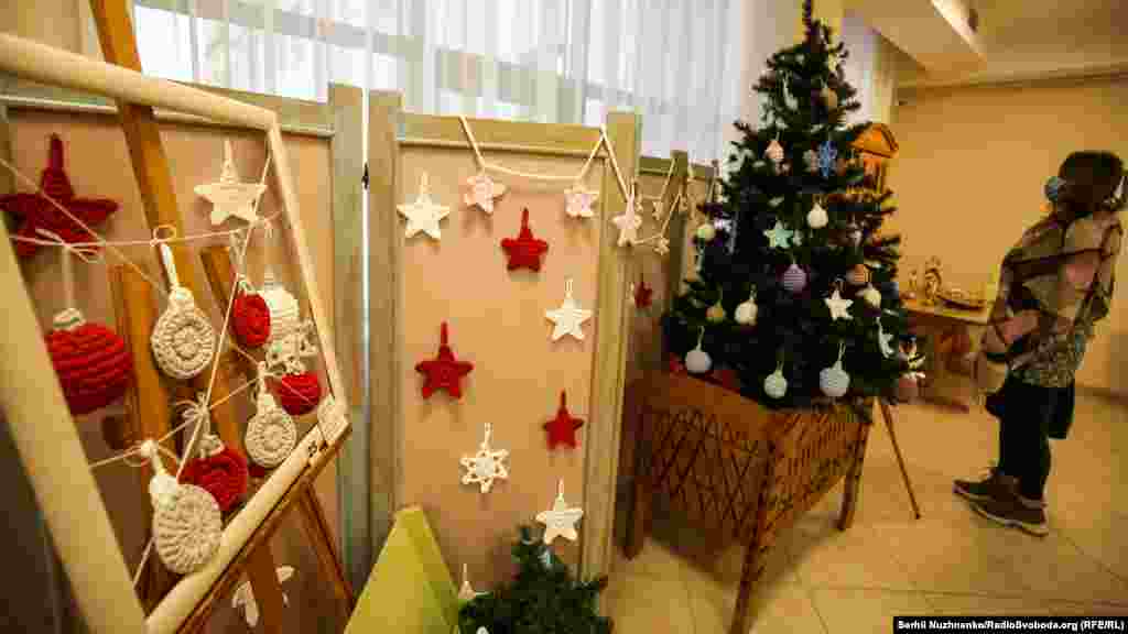 Також представлені ялинкові прикраси та новорічно-різдвяна атрибутика від українських майстрів та фотозони.