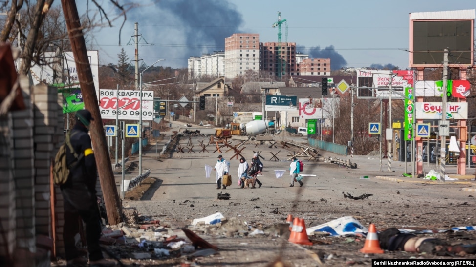 Передмістя Києва зазнали руйнувань через обстріли з боку російських військ. Армія РФ розбомбила Бордянку, Гостомель, Бучу, Ворзель, Васильків та Ірпінь. Російські військові не припиняють обстріли і під час евакуації: 6 березня кореспондент Радіо Свобода повідомляв, що в Ірпені війська Росії відкрили вогонь по цивільних, які евакуювалися. Тоді внаслідок цього щонайменше вісім людей загинули, в тому числі – діти.