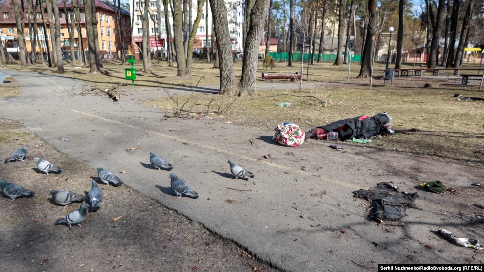Тіло російського військового на одній з вулиць Ірпеня. 11 березня