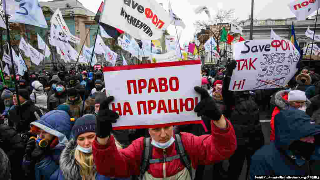 Протестувальники, зокрема, вимагали, щоб парламент ухвалив законопроєкти про спрощену систему оподаткування малого і середнього бізнесу, а також відклав обов’язкове використання касових апаратів для фізичних осіб-підприємців (ФОПів). Пізніше Верховна Рада відклала розгляд законопроєкту на рік, до 1 січня 2022 року.