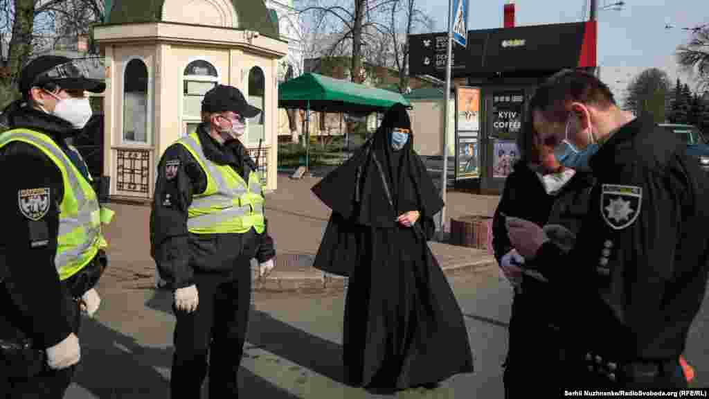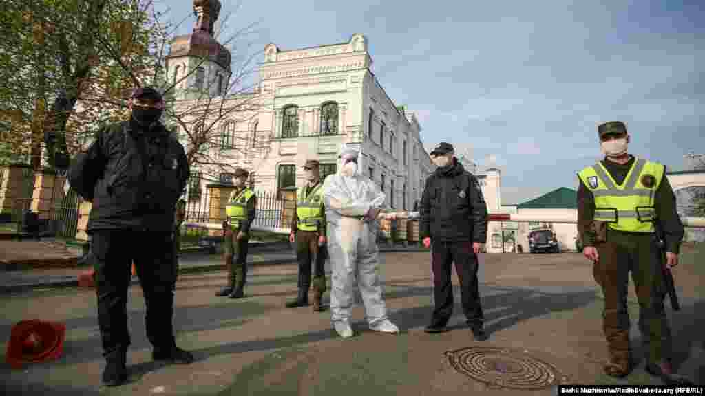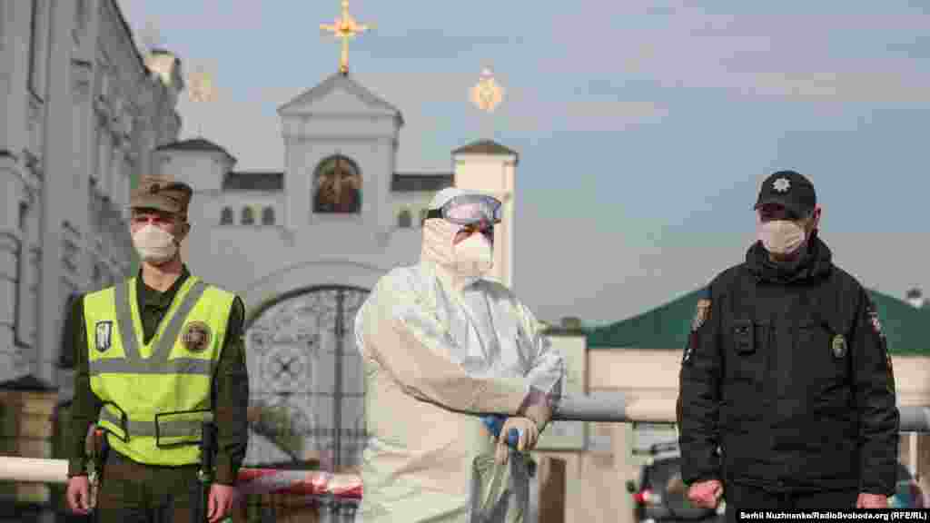 Ввечері поліція і Нацгвардія почали патрулювання біля Києво-Печерської лаври. На входах до лаври стоять медики, які проводять температурний скринінг. До лаври допускають лише її служителів і тих, хто може підтвердити документально необхідність перебувати там.