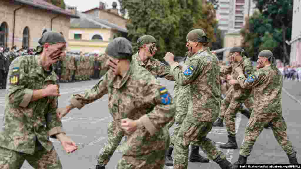 Усі присутні вшанували хвилиною мовчання загиблих на українсько-російській війні. Далі був концерт у виконанні ліцеїстів, показові виступи з військової майстерності. Не забули і про традицію – другий курс передав погони новоприбулим.