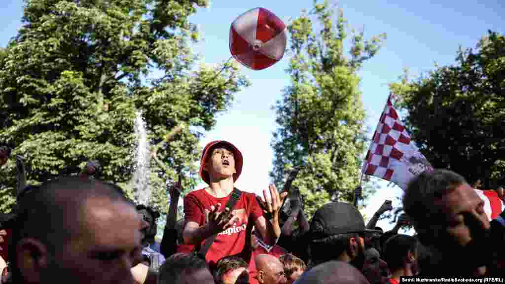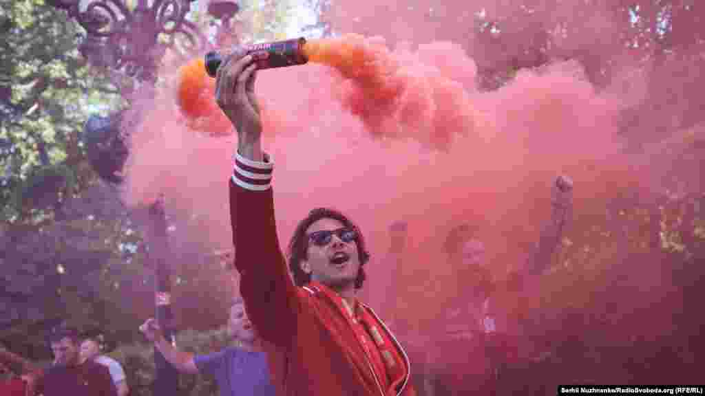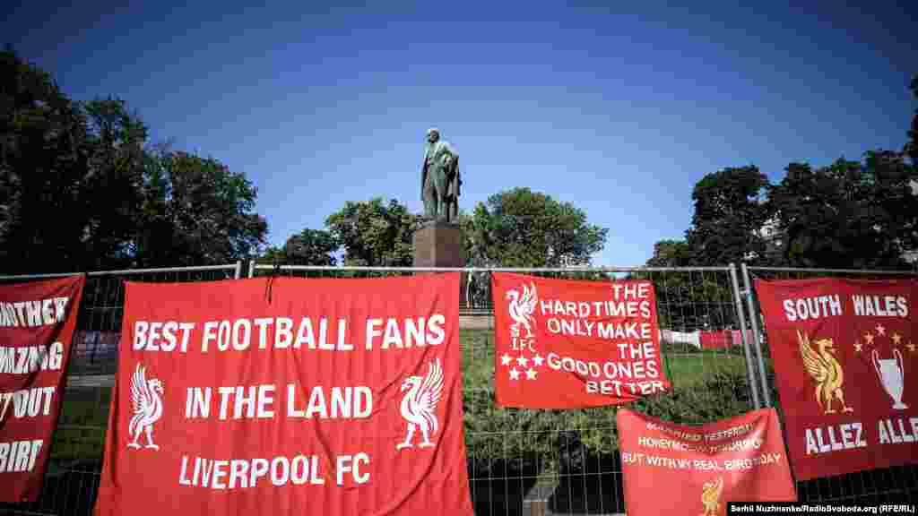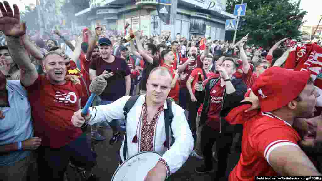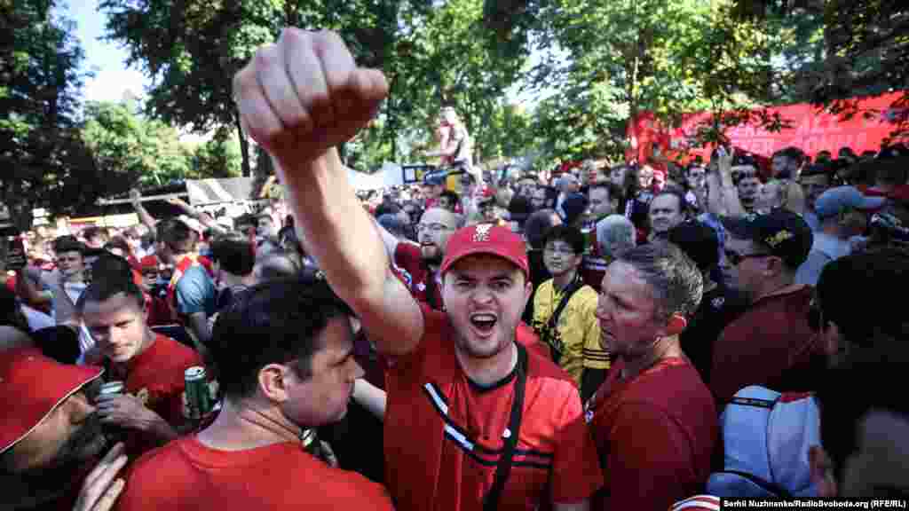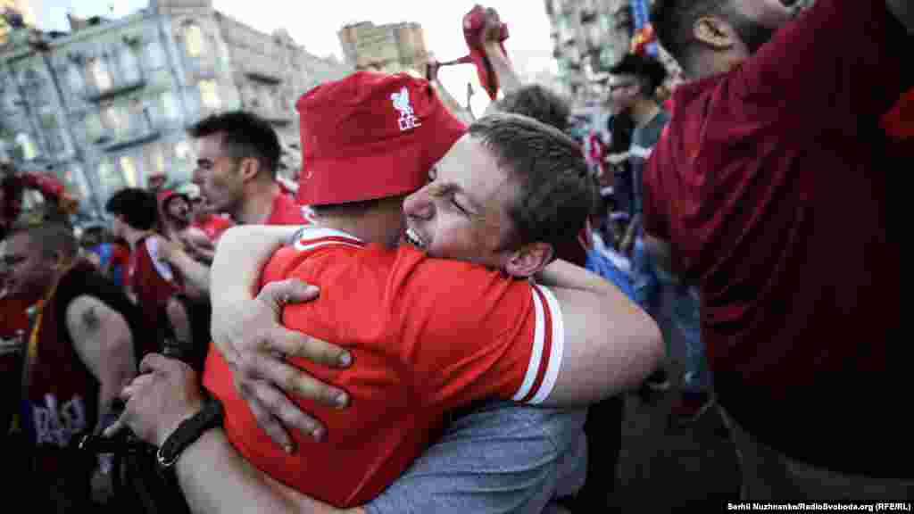 Зі сльозами на очах, але з вірою в перемогу в серці вболівальники англійського Ліверпуля співали гімн своєї команди «You never walk alone». І хай на футбольному полі англійці не здобули перемогу, проте вболівальники в самому центрі української столиці, в парку Шевченка, створили справжнє свято для своєї команди – декілька тисяч фанатів-англійців співали пісню у підтримку «Ліверпуля» й зворушили усіх киян своєю відданістю футболістам.