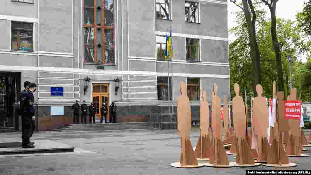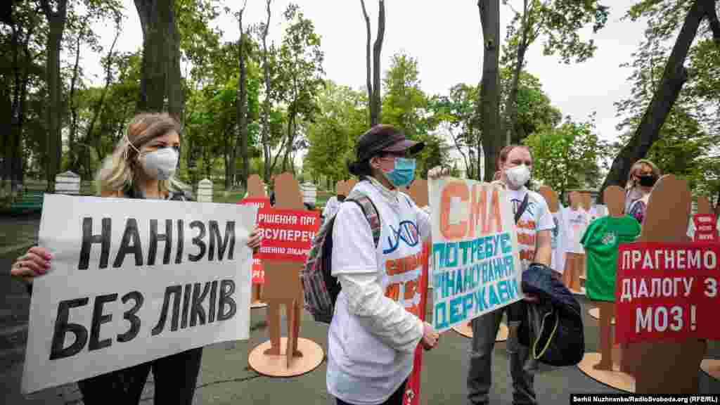 Оскільки масові заходи заборонені, участь в акції не брали безпосередньо пацієнти. Але для того, аби нагадати управлінцям, що від їхніх рішень залежить життя тисяч українців, організатори встановили перед міністерством 50 картонних манекенів.