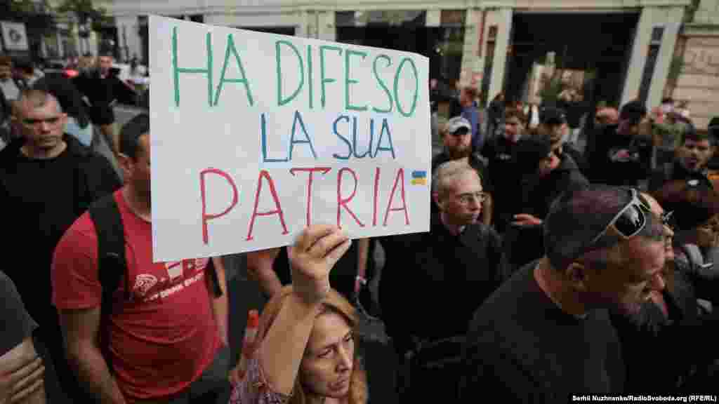 Близько двох сотень киян вийшли під посольство Італії в Києві, аби вимагати звільнення нацгвардійця Віталія Марківа.