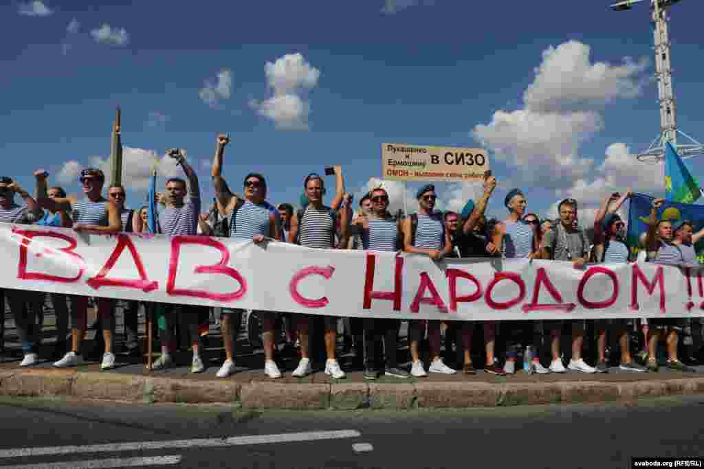 За повідомленням Радіо Свобода, в Мінську велика колона демонстрантів йшла проспектом Незалежності – в бік центру. Люди несуть два величезних біло-червоно-білих прапори і скандують: «Живє Бєларусь!» і «Йди!».