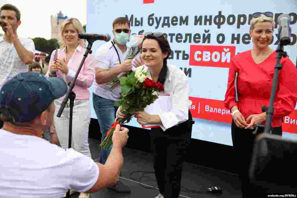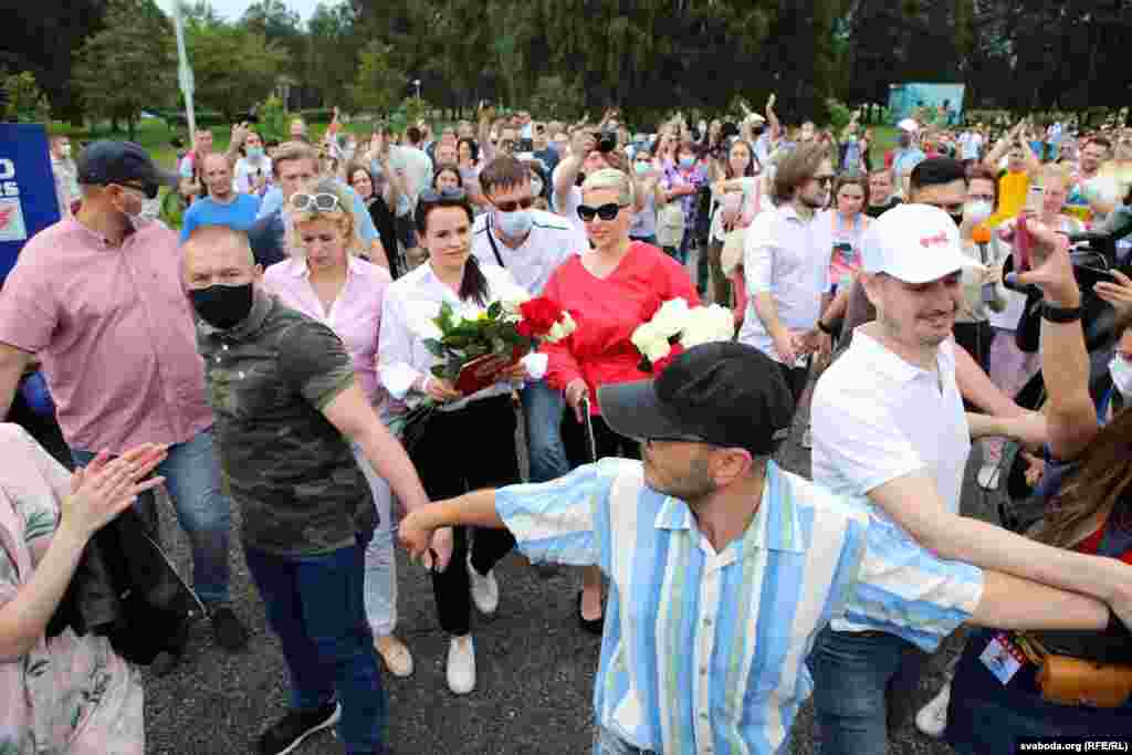 19 липня кандидатка в президенти Світлана Тихановська провела агітаційний пікет на площі Бангалор у Мінську. Разом із нею на пікеті були представниця штабу Віктора Бабарика Марія Колесникова і дружина Валерія Цепкала Вероніка.