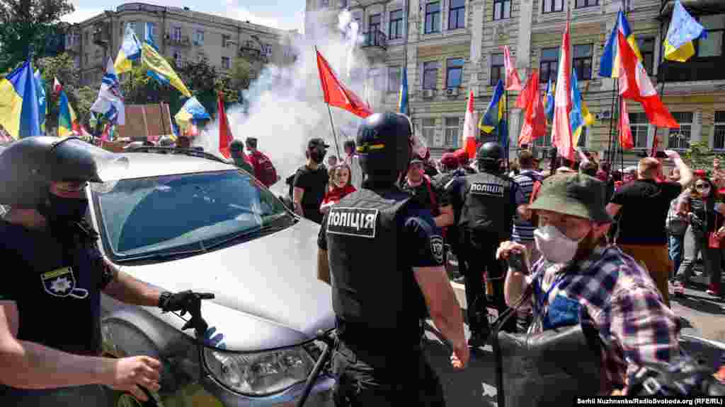 Прихильникам Шарія у проведенні акції намагалися перешкоджати представники кількох праворадикальних організацій, утім, поліція не допустили масових сутичок.