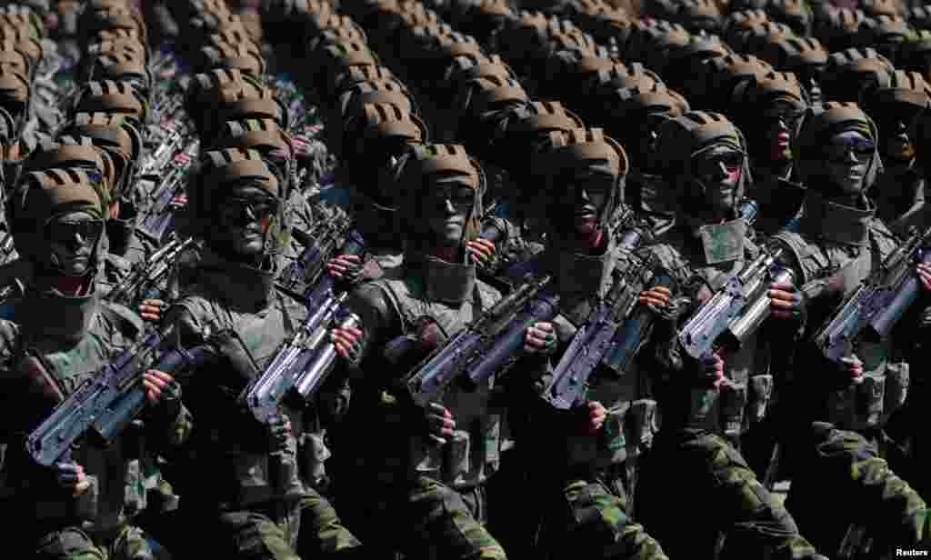 Солдати марширують під час параду до 70-ї річниці КНДР