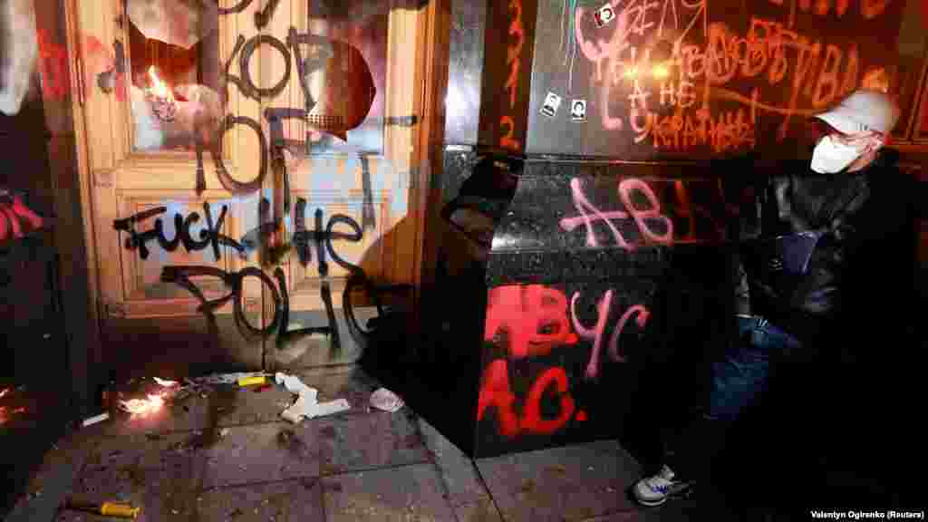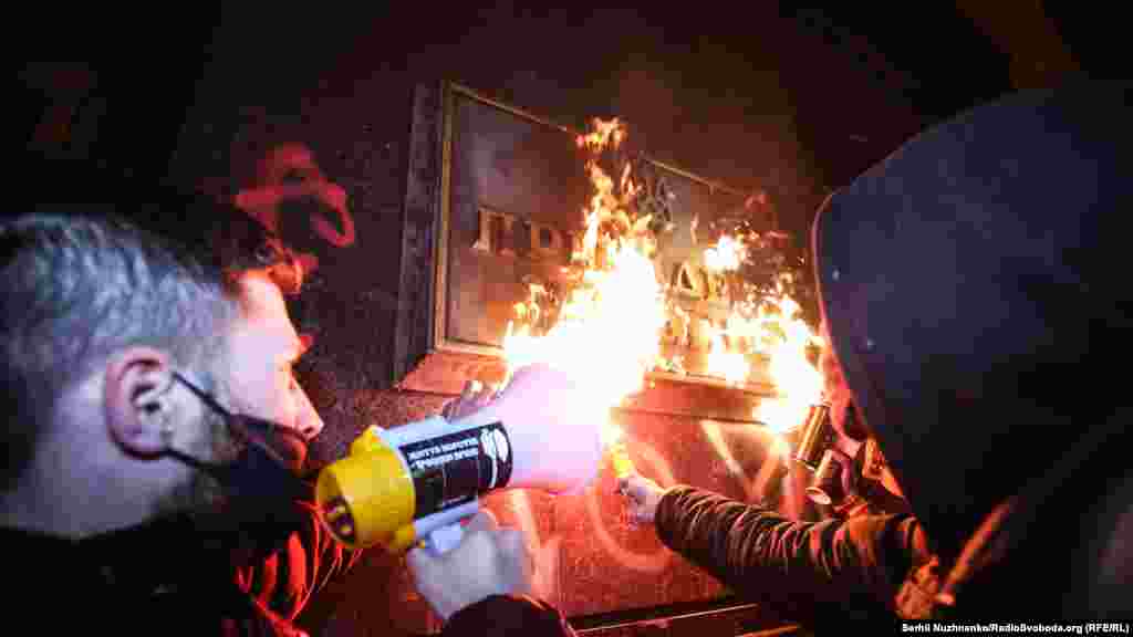 Акція на підтримку активіста Сергія Стерненка, під час якої пошкодили двері і розмалювали фасад будівлі Офісу президента, відбулася 20 березня, також розбили кілька шибок.