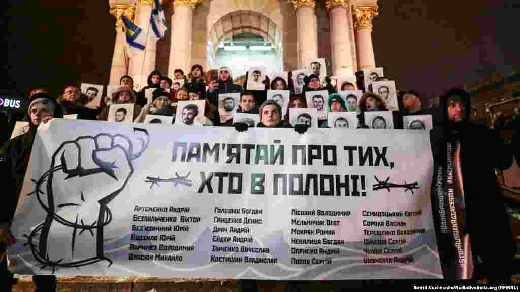 У Києві, на мадані Незалежності пройшла громадська акція «Пам’ятай про тих, хто в полоні». Акція покликана підтримати українських військовополонених моряків, та всіх інших бранців Кремля, незаконно ув’язнених в російських тюрмах та на окупованих територіях України.Учасникам акції також писали листівки із новорічним привітанням українським морякам та іншим в’язням.
