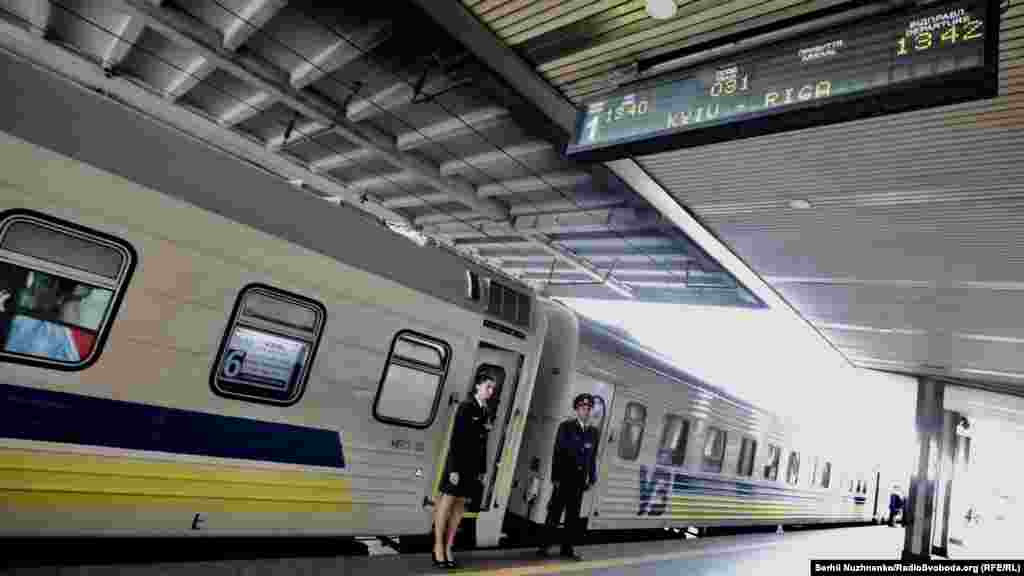 Із залізничного вокзалу Києва в перший рейс вирушив потяг «чотирьох столиць» №32/31. Він їде за маршрутом Київ – Мінськ – Вільнюс – Рига. В складі передбачено 10 вагонів, із них 9 купе і 1 люкс. В одному з вагонів купе розділяються на чоловічі та жіночі. Вагони пофарбовані в білий колір, на них вже нанесено новий логотип української залізниці.