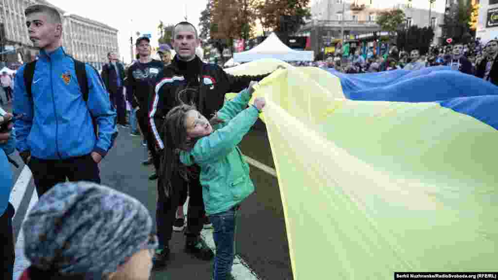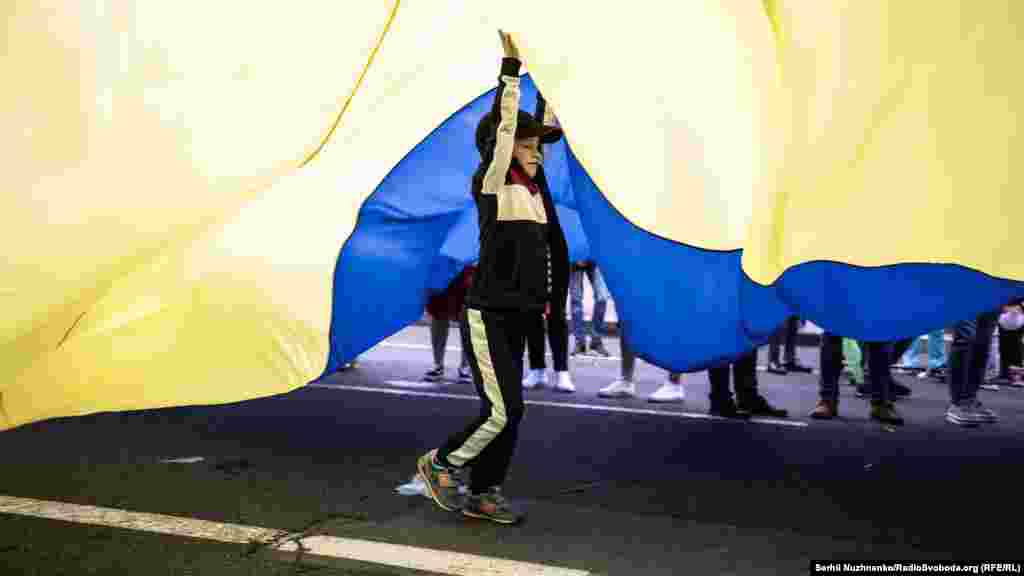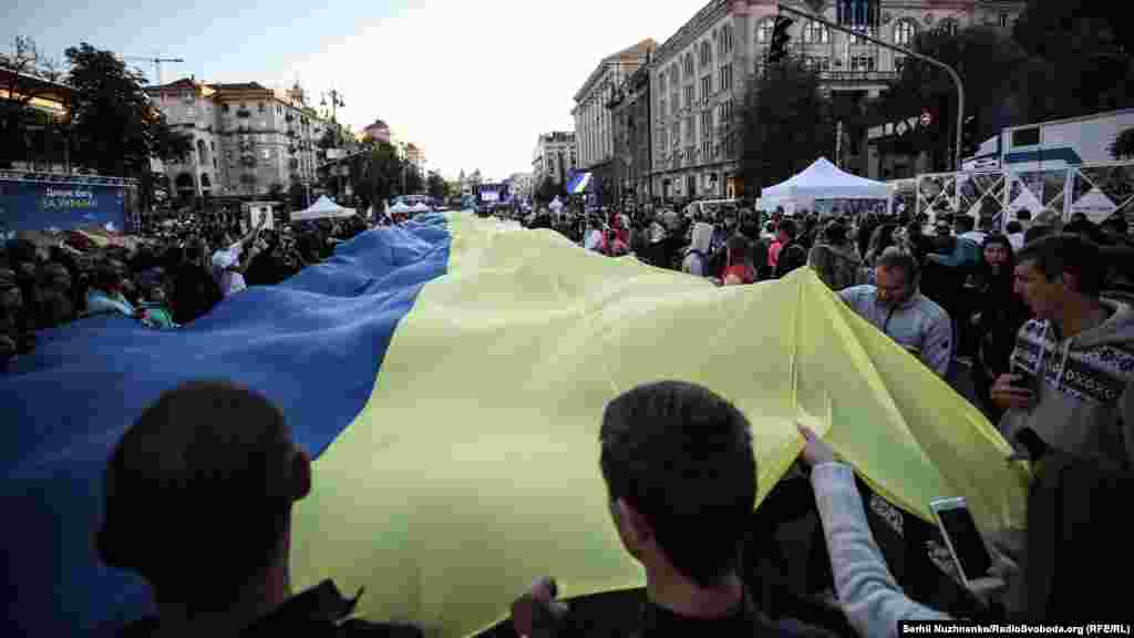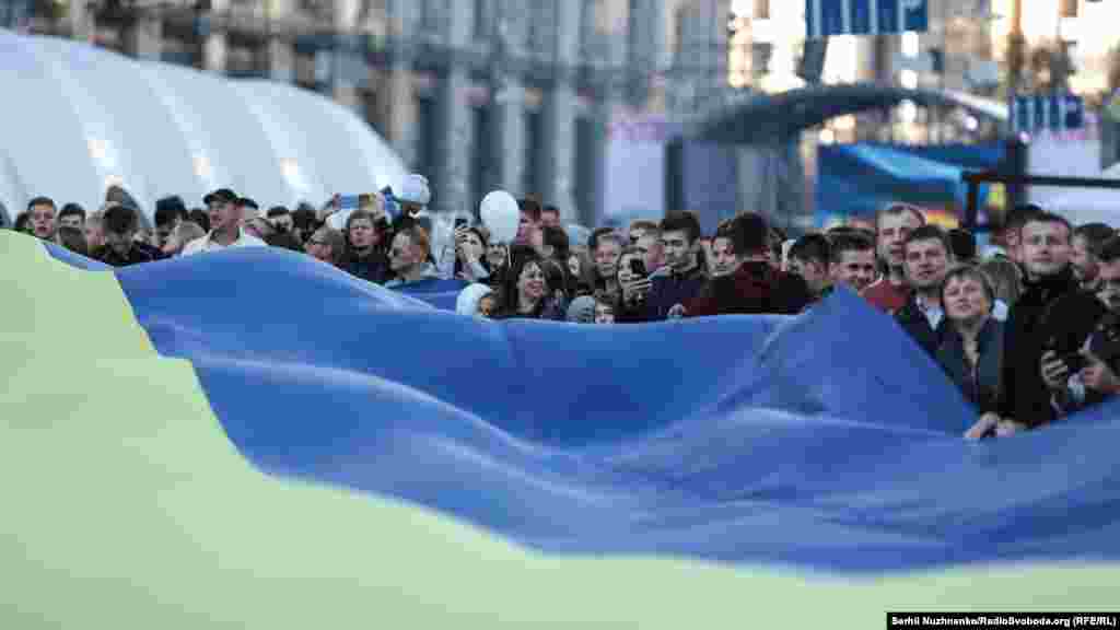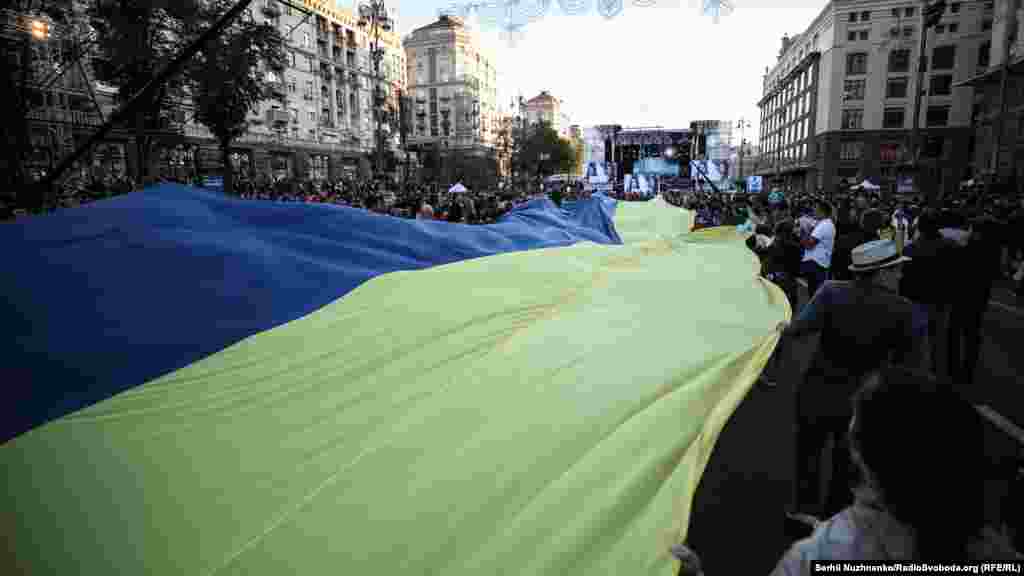 У Києві під час Свята Подяки встановили рекорд: кілька тисяч українців розгорнули уздовж Хрещатика найдовший прапор в Україні (250 метрів у довжину та 6 метрів у ширину).