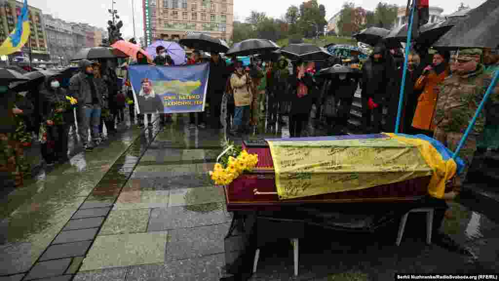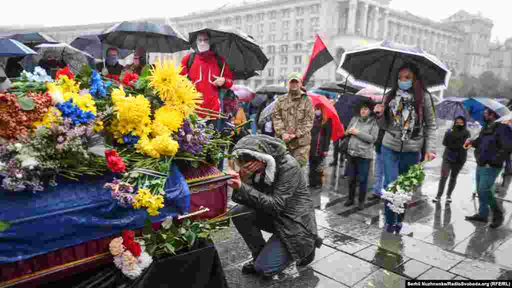 У Києві, на майдані Незалежності, попрощалися із військовим Миколою Микитенком, який підпалив себе на знак протесту. Попри погодні умови, попрощатися із ветераном бойових дій на Донбасі прийшло кілька десятків людей. Прощалися із чоловіком на тому ж місці, де він вчинив акт самоспалення.