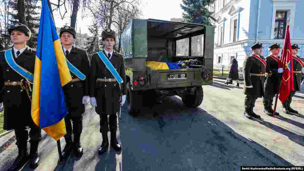 У церемонії прощання взяли участь міністр оборони Олексій Резніков, головнокомандувач Збройних Сил України Валерій Залужний, а також інші представники командування ЗСУ
